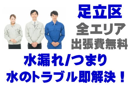 足立区上下水排水溝詰まり / 足立区水道局トイレ水漏れ / 足立区上下水キッチン水漏れ / 足立区指定工事店浴室蛇口交換 / 足立区上下水洗面台修理