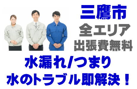 三鷹市上下水排水溝詰まり / 三鷹市水道局トイレ水漏れ / 三鷹市上下水キッチン水漏れ / 三鷹市指定工事店浴室蛇口交換 / 三鷹市上下水洗面台修理